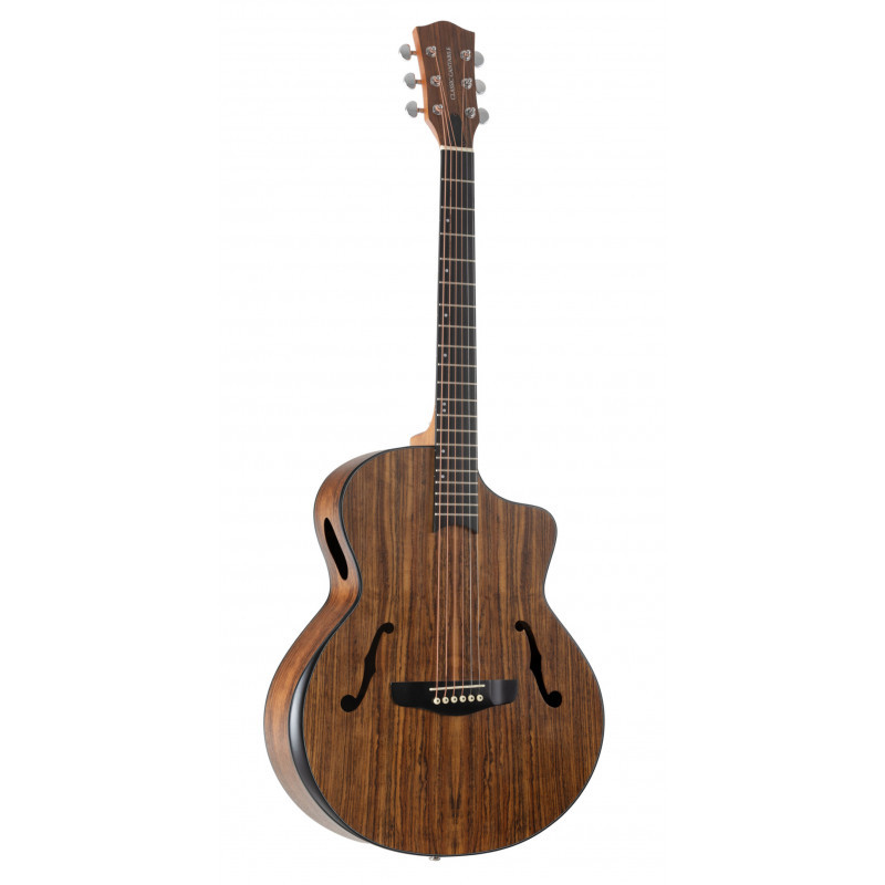 Tělo z ořechového dřeva s nádhernou dřevokresbou poskytuje výrazný středopásmový zvuk. Krk z okoume je osazen hmatníkem z extrémně odolného dřeva Blackwood, které se vyznačuje zejména dlouhou životností.